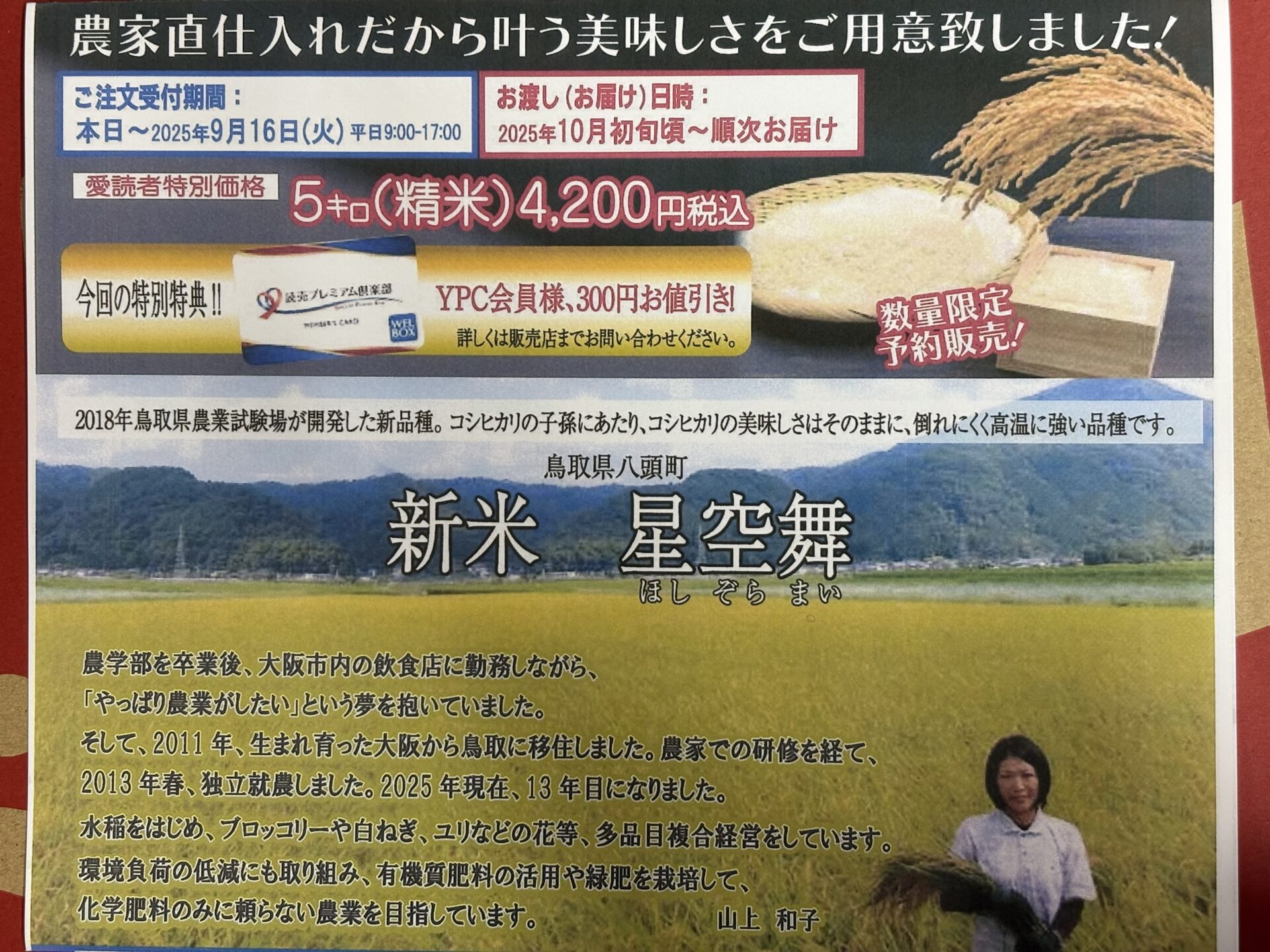 💗新米 販売中💗 2025.10.21お知らせ こんにちは♡ 今回は宣伝でーす!! 株式会社石川では、鳥取県のお米 新米 星空舞(ほしぞらまい)を 愛読者様特別価格5キロ4200円(税込)にて 販売いたしております!! ぜひご賞味ください♥ Tweet Share Hatena Pocket Pin it お知らせ PANIちゃん 34歳おめでとう! 関連記事一覧 大好評!!鯖寿司 販売決定♪ お中元に!! 予定数完売御礼💗 天理スタミナラーメン! pineapple🍍 みんなでご飯🍚 読売新聞愛読者謝恩日帰り旅行♪ おーたにさーん!!! プレミアムグルメ🍖
